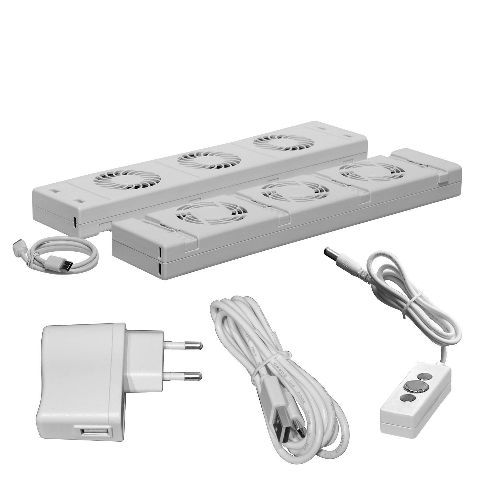 3 x Main Units, 1 x thermostat, 1 x Power adapter DC 5 V, 1 A (Incl. Power cable 150 cm), 2 x Extension cable 30 cm.